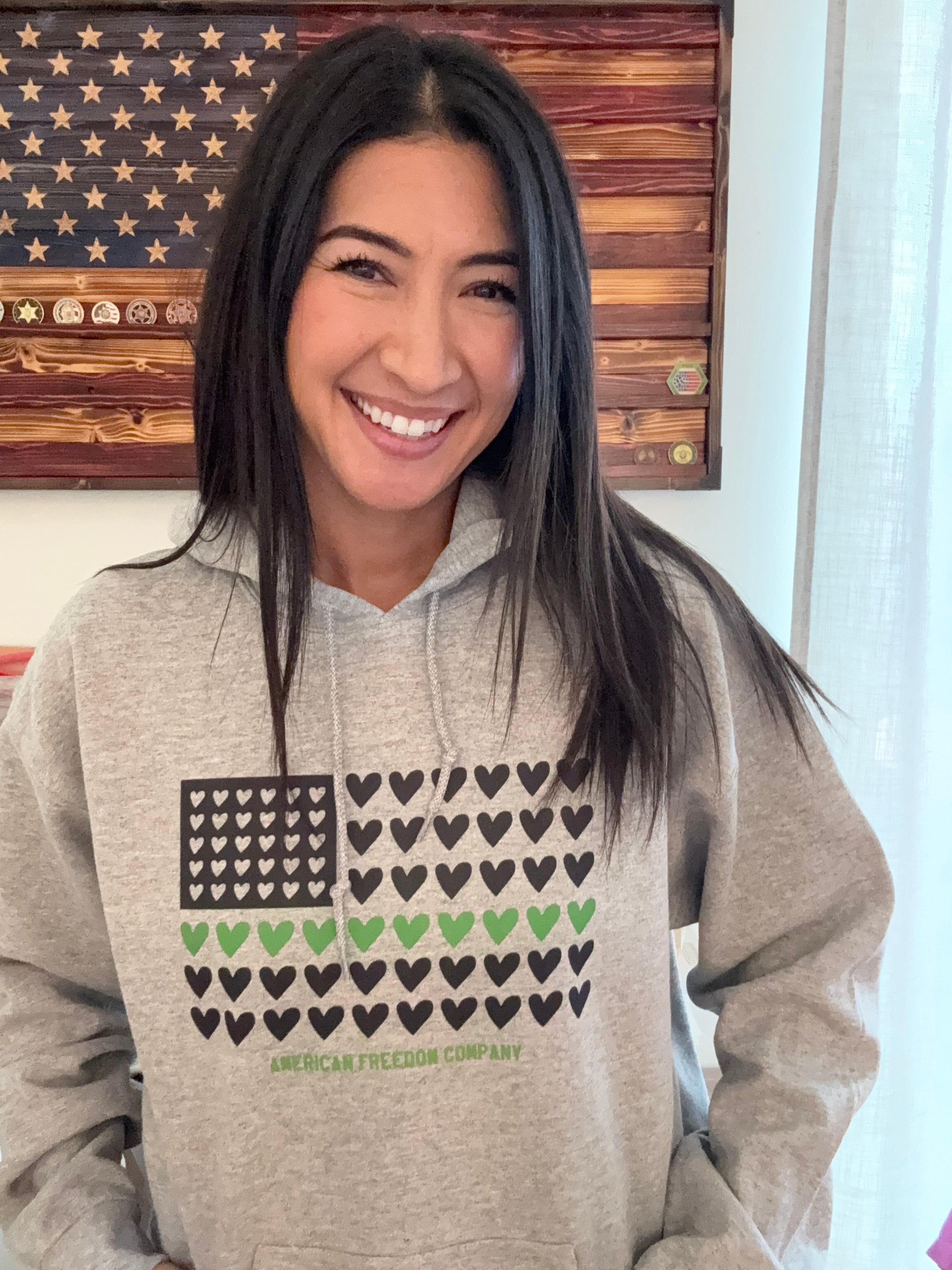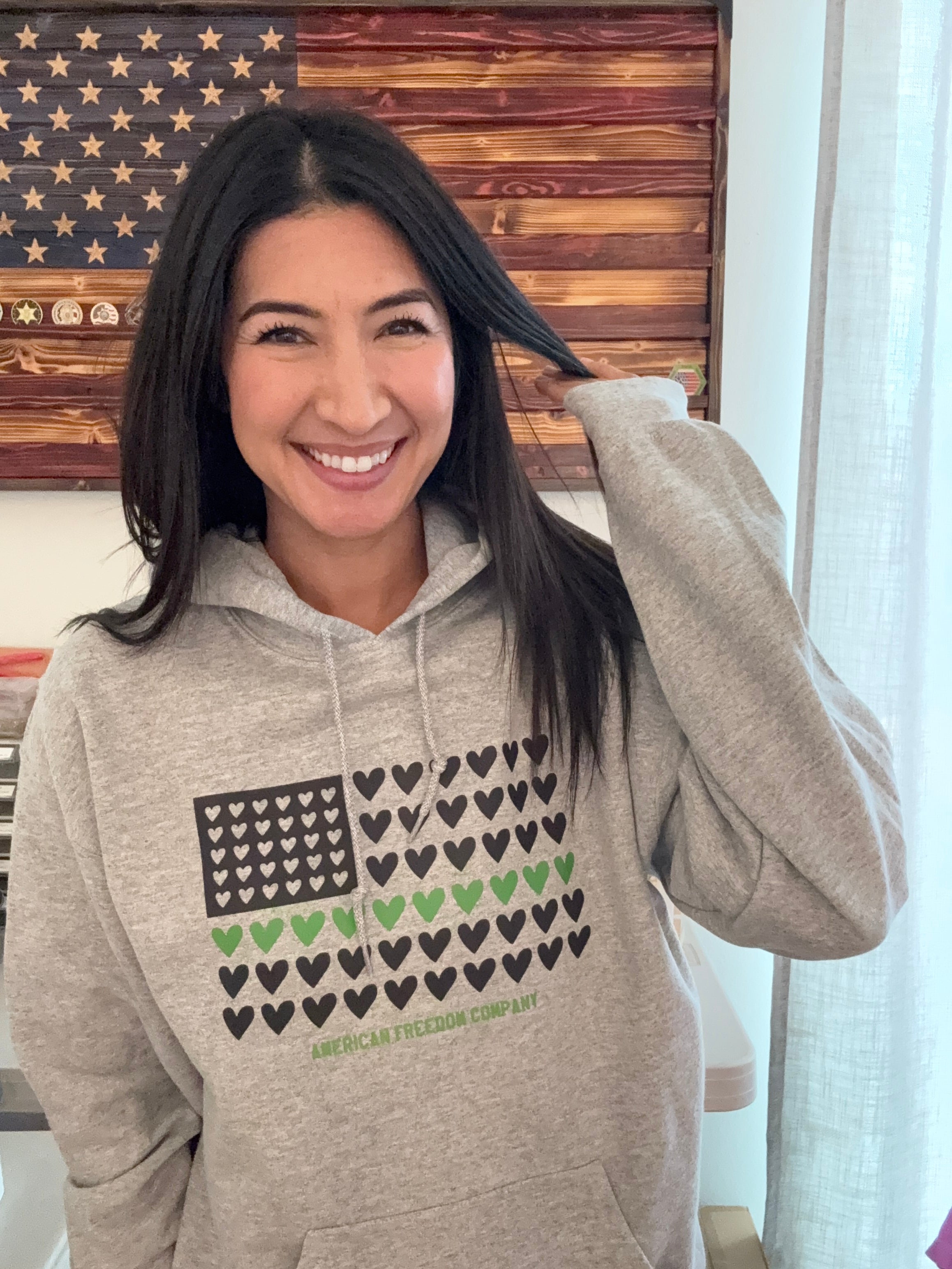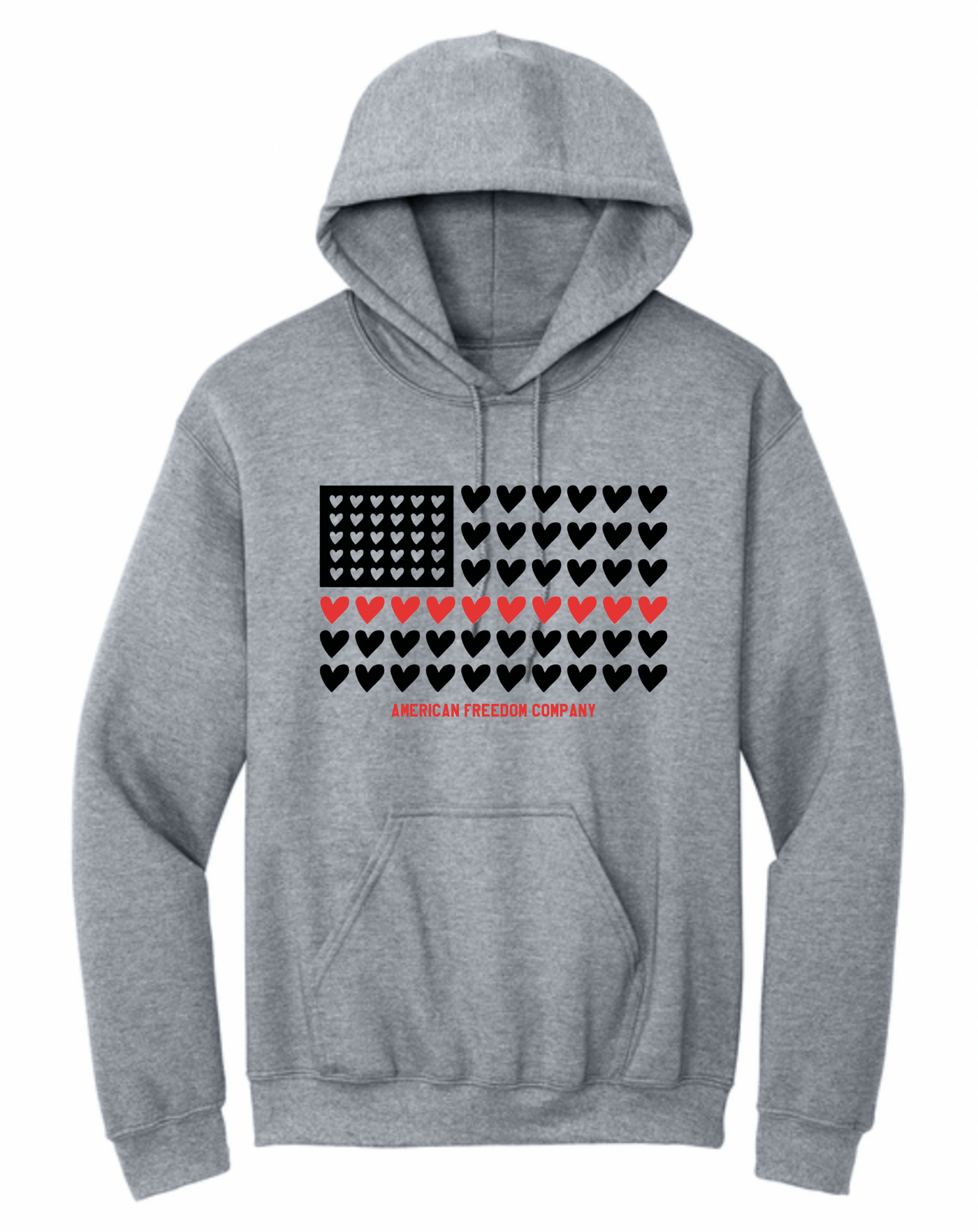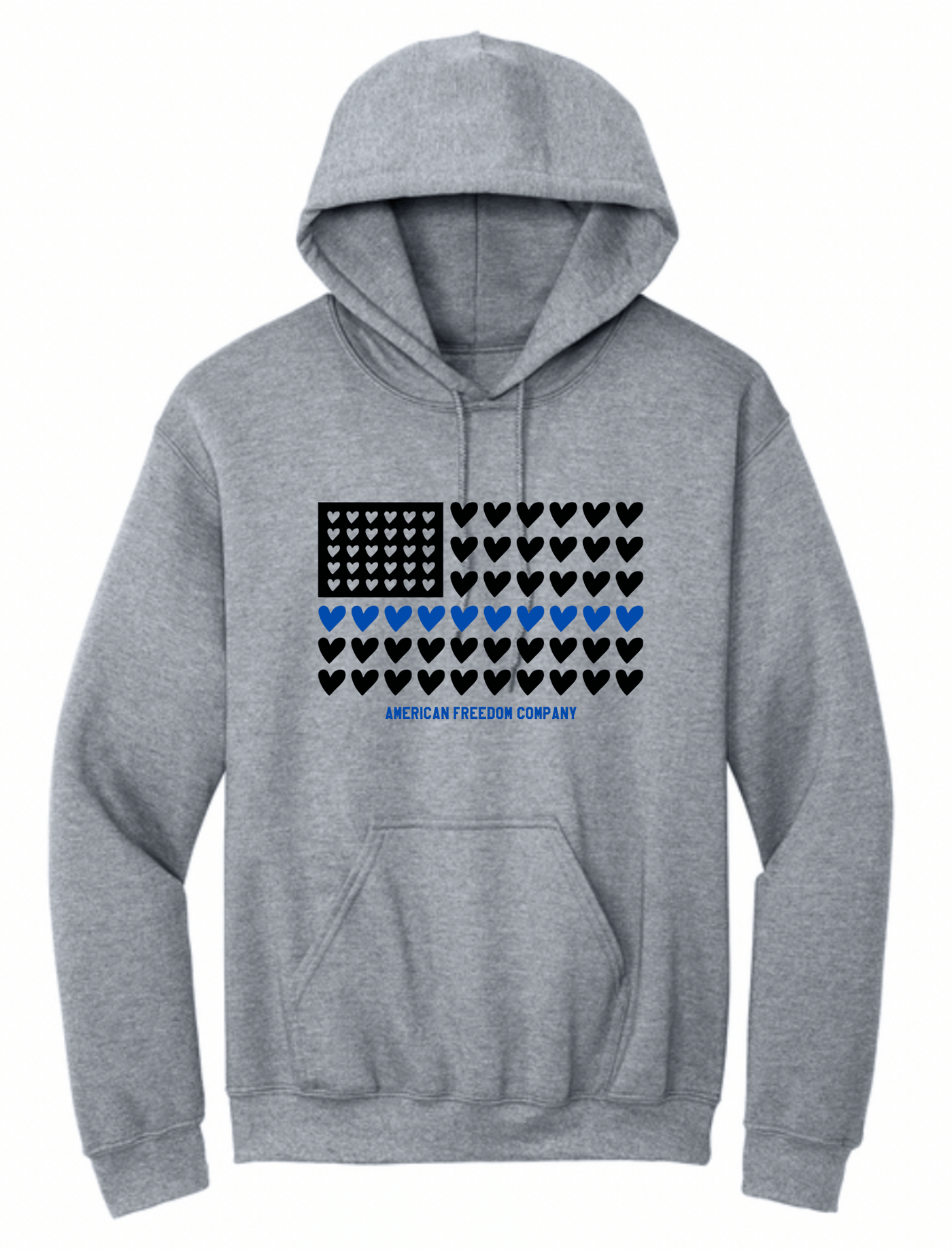 Thin Line Support Hooded Sweatshirt (Grey Sweatshirt with Black Hearts)