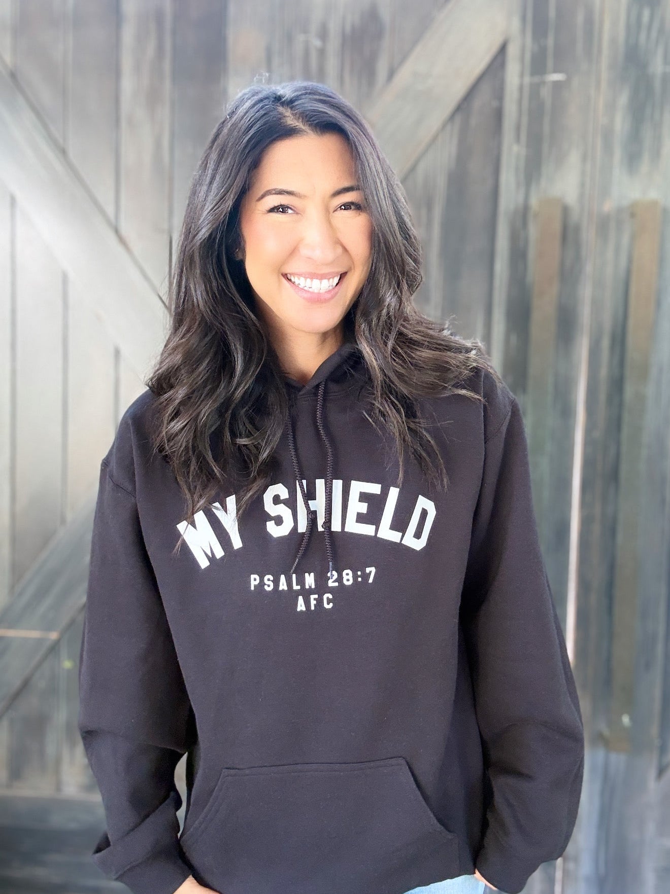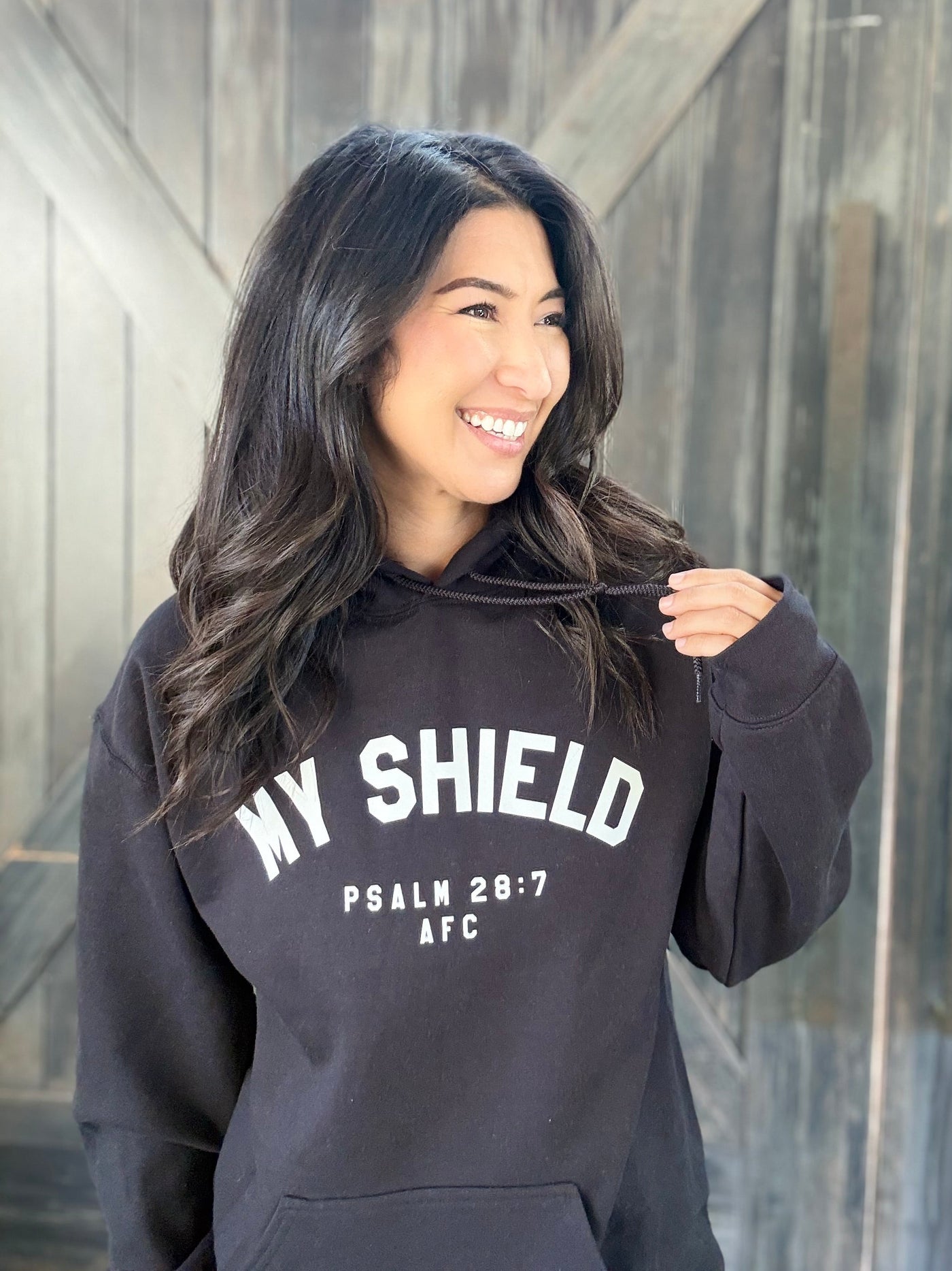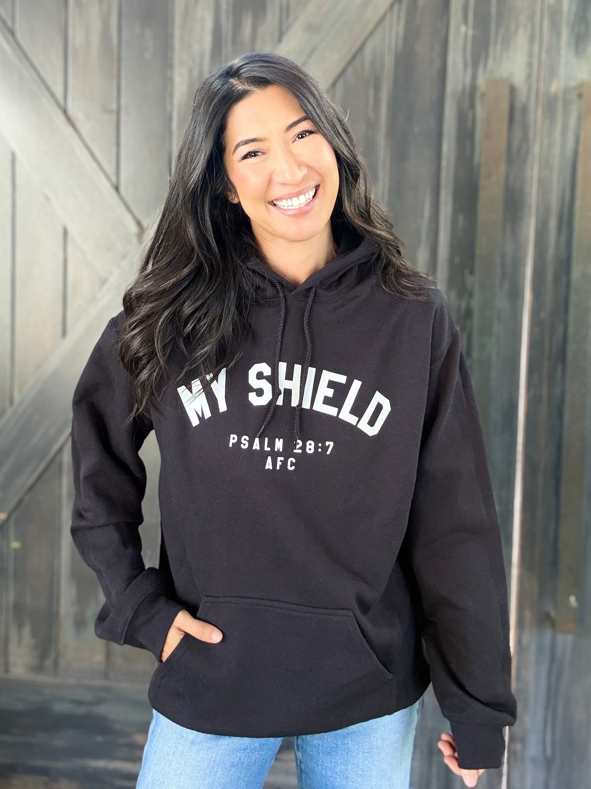 Spelling will be corrected for print. Psalm 28:7 reads "The Lord is my strength and my shield, in whom my heart trusts. I am helped, so my heart rejoices; with my song I praise him." This design is inspired by the testimony that the Lord is our strength and shield.