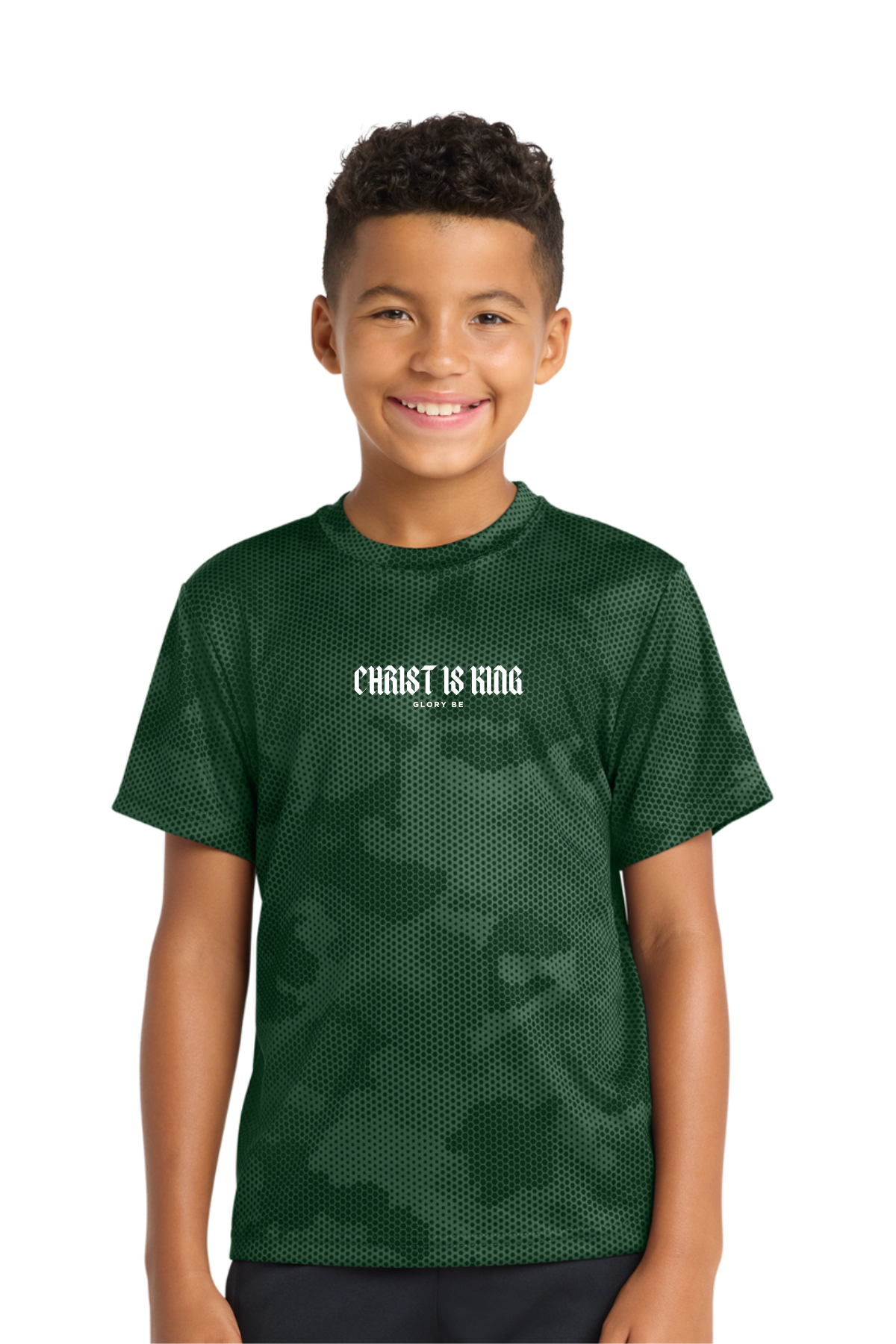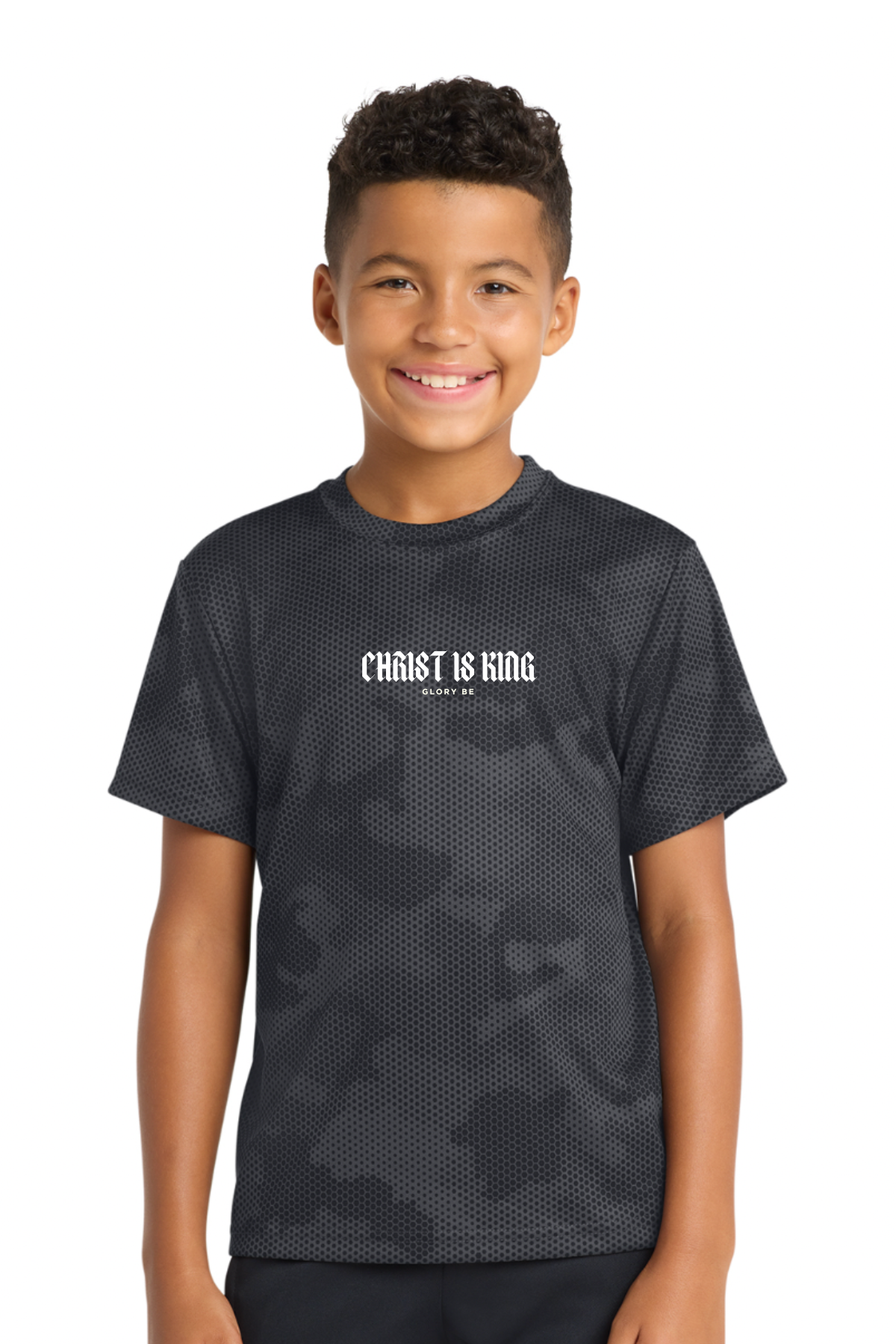 Christ is King performance tee for youth! From the court to the outdoors, machine washable and ready for all of life's adventures. Encourage kids to wear their faith boldly in this most comfortable tee shirt!